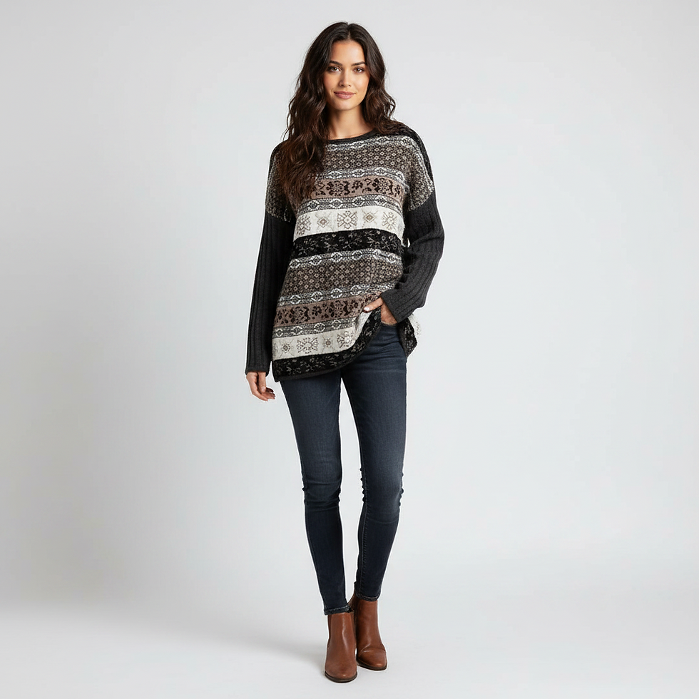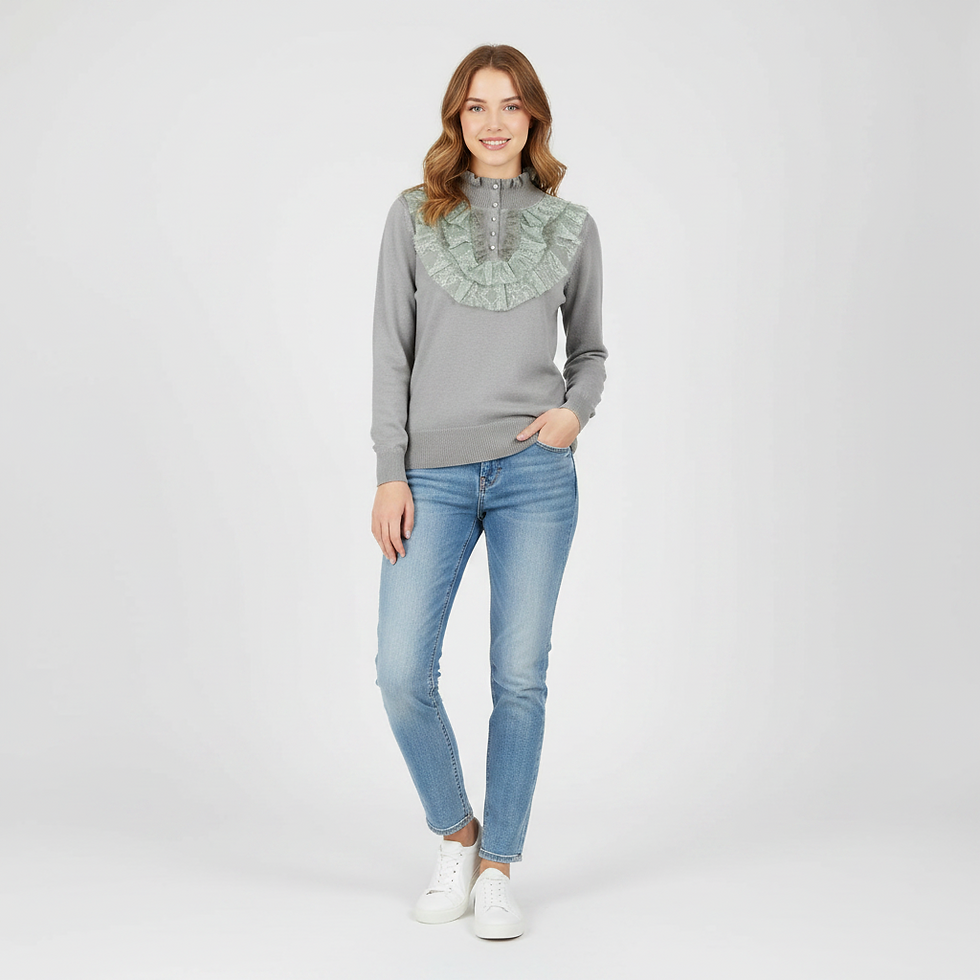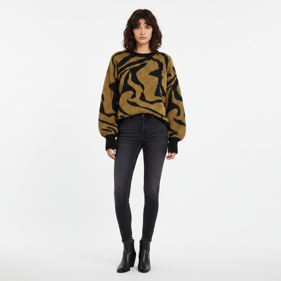Sweater vintage acanalado en tono negro con detalle de vuelos en mangas y basta. Femenino y versátil, ideal para un look minimal con un toque especial. Talla M (Ver medidas).